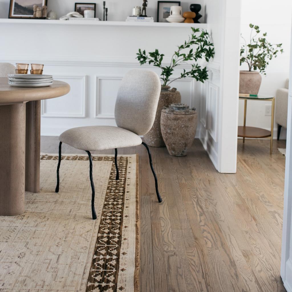 The classically styled Acacia collection features earthy, neutral tones of saturated brown, warm birch and muted gold which are subtly accented with touches of slate blue, soft clay, and moss green. The space-dyed wool and nylon blend is woven in Egypt on an Axminster loom and features incorporated cotton fringe.