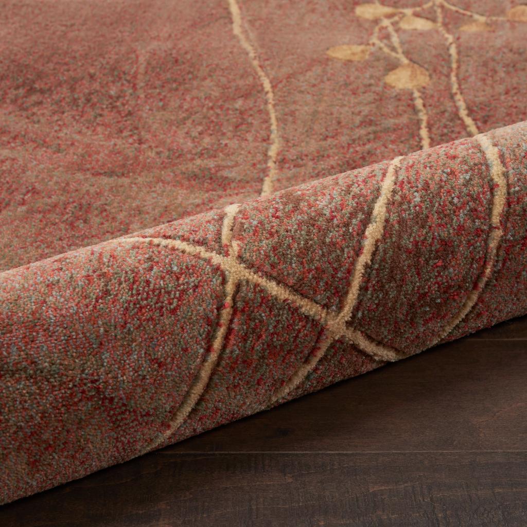 Delicate leaves and branches grow gracefully across this lush pile rug. Rich hues of cream, crimson and blue, are lit up with a subtle luminosity to lend an air of understated elegance to any environment.