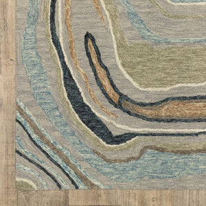 Kipton is a hand-tufted collection constructed of space dyed wool and features a dense, textural cut and loop pile. Designs recall the organic shifting and layering of natural elements over time and that idea is echoed in the softly saturated blue and green tones as well as warmer shades of copper and gold.