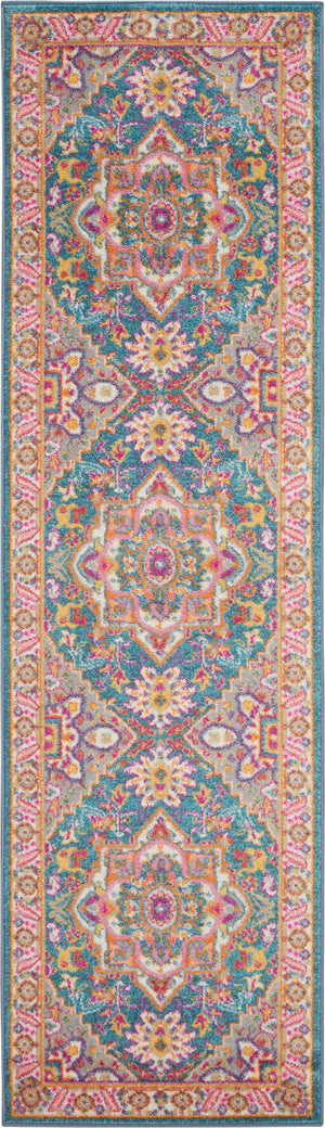 Nourison Home Passion PSN20 Teal Multicolor Indoor Runner - Bohemian Power Loomed Machine Made Medium Pile