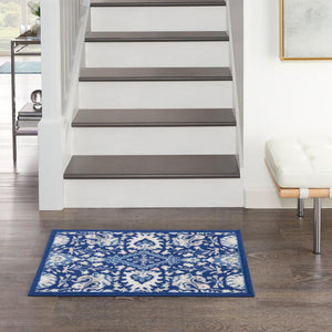 Roll out instant visual appeal with this Whimsicle Collection area rug. Persian-inspired floral motifs adorn the surface of this design in stunning navy multicolor. Machine made of soft polyester, this low-profile area rug fits seamlessly under your sofa, dining room table, or near areas that need door clearance.