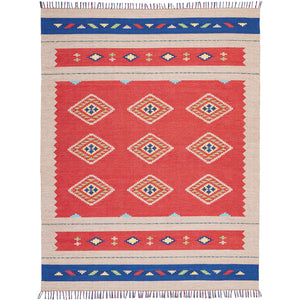 Nourison Home Baja BAJ02 Handmade Multicolor Rectangle Area Rug - Reversible Indoor Southwestern Rug with Red & Beige Background