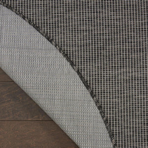 The appealing texture of this Positano outdoor rug is made beautifully visible by the space-dyed color variations of its striated yarns. This flatweave rug is machine-made from durable polypropylene fibers that are easily washable outdoors: simply hose rinse and air dry; do not machine-wash. Presented in charcoal grey, this versatile design easily fits in a variety of spaces – from your outdoor patio conversation area to your living room, dining room, or kitchen. The simple, solid pattern is great for layering with other rugs.