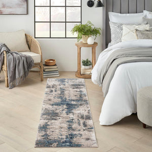 The layered abstract design by Nourison American Manor rug infuses a sense of cosmopolitan chic to your décor. Through a delicate fusion of neutral ivory, muted blue, and grey, it creates an illusion of depth that easily becomes a statement piece for your living room, bedroom, or home office. American Manor is skillfully power-loomed of polyester and polypropylene that feels delightfully soft underfoot.