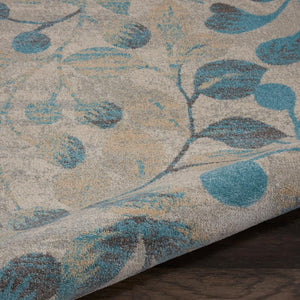 The calm beauty of a leafy glade is captured in this Tranquil Collection area rug. The soothing palette of turquoise, ivory, and beige has a dreamy feel that adds soft appeal to any room. Enjoy comfort and elegance in any room in the home with this contemporary botanical rug.