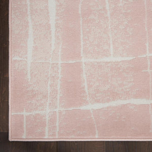 With its abstract linear design, this area rug from the Whimsicle Collection adds a distinctively sleek and modern touch to your living room, bedroom, dining room, or home office. A soft pink and ivory palette, enhanced with a vintage fade, complements any style of decor. This cool and contemporary design is machine made of low profile, easy to clean polyester fibers.