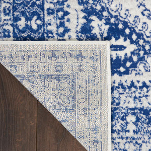 This boho-chic area rug from the Whimsicle Collection is boldly designed for the modern home. Subtly distressed floral and geometric motifs in navy are woven onto an ivory ground for a comfortably lived-in effect that is at once welcoming and pleasing. This low-profile design is machine made of soft, easy to clean polyester fibers.