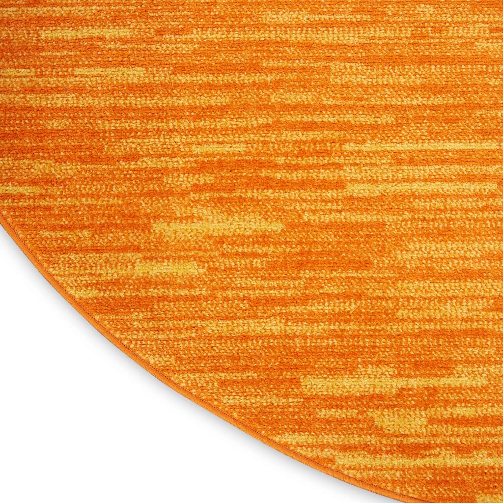 Designed for busy, active lifestyles, this sunburst orange outdoor rug from the Nourison Essentials Collection is the ideal pairing of style and practicality. The simple, solid pattern is enhanced with subtle tonal variations and a surprisingly soft texture that’s equally suitable for any room inside the home. Place in any room as a standalone foundation for your décor or use as part of a layered rug look. Machine-made with a low-profile construction from easy to clean polypropylene yarns, this modern rug easily withstands heavy traffic and does not shed. Hand washable outdoors only: rinse with a hose and air dry.