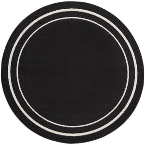 Add color and definition to your patio conversation space or indoor area with this contemporary black outdoor rug from the Nourison Essentials Collection. The double bordered rug design is made with softly textured, low-profile polypropylene yarns that stand up to heavy foot traffic. An ideal choice for busy households, this kid and pet-friendly rug does not shed and is washable outdoors only: hose-rinse spills and air-dry to clean. To extend the life of your rug, bring it inside during extreme weather.