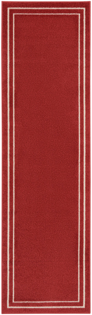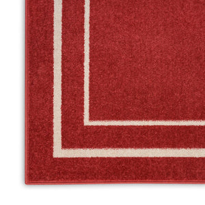 Add color and definition to your patio conversation space or indoor area with this contemporary red outdoor rug from the Nourison Essentials Collection. The double bordered rug design is made with softly textured, low-profile polypropylene yarns that stand up to heavy foot traffic. An ideal choice for busy households, this kid and pet-friendly rug does not shed and is washable outdoors only: hose-rinse spills and air-dry to clean. To extend the life of your rug, bring it inside during extreme weather.