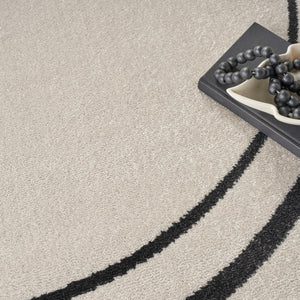 Add color and definition to your patio conversation space or indoor area with this contemporary ivory and black outdoor rug from the Nourison Essentials Collection. The double bordered rug design is made with softly textured, low-profile polypropylene yarns that stand up to heavy foot traffic. An ideal choice for busy households, this kid and pet-friendly rug does not shed and is washable outdoors only: hose-rinse spills and air-dry to clean. To extend the life of your rug, bring it inside during extreme weather.