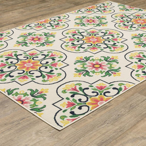 Oriental Weavers Havana HAV04 Ivory Rectangle Indoor/Outdoor Area Rug Quatrefoil  Pattern