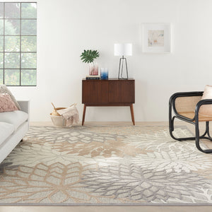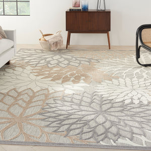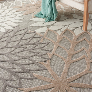 In soft shades of beige, taupe, ivory, and grey, this Aloha outdoor rug brings extra life and excitement to your patio, deck, or poolside. Its high-low construction combines delightful texture with an intricately woven base for an exceptional look and feel that stands up to the elements. Machine made from premium stain-resistant fibers for long wear and easy cleaning: just rinse with a hose and air dry.