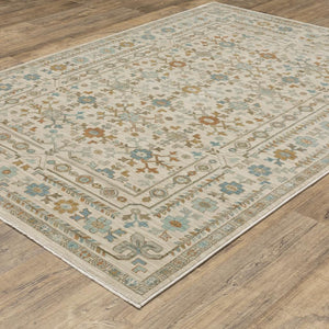The Maeve collection features subtly pigmented color palette features neutral tones of ash brown, oat milk and sustained gray as well as mineral-based blues, matcha green, sunbaked clay and antique gold. The quietly modern color palette gives fresh appeal to traditional Persian and block print patterns with a touch of bohemian flair. It is power-loomed of super-soft, space-dyed polypropylene.