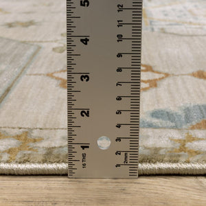 The Maeve collection features subtly pigmented color palette features neutral tones of ash brown, oat milk and sustained gray as well as mineral-based blues, matcha green, sunbaked clay and antique gold. The quietly modern color palette gives fresh appeal to traditional Persian and block print patterns with a touch of bohemian flair. It is power-loomed of super-soft, space-dyed polypropylene.