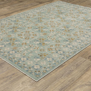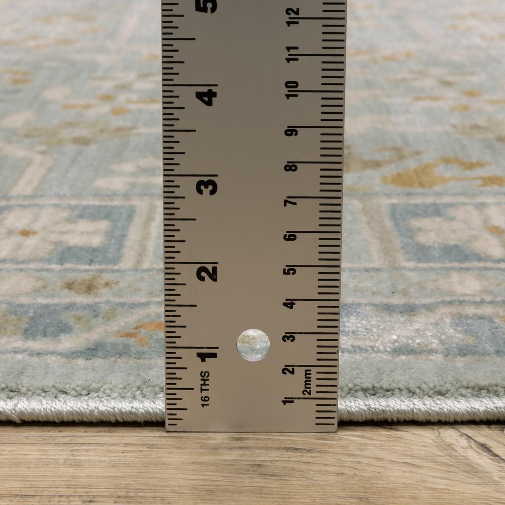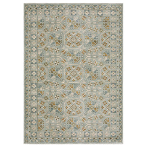 The Maeve collection features subtly pigmented color palette features neutral tones of ash brown, oat milk and sustained gray as well as mineral-based blues, matcha green, sunbaked clay and antique gold. The quietly modern color palette gives fresh appeal to traditional Persian and block print patterns with a touch of bohemian flair. It is power-loomed of super-soft, space-dyed polypropylene.