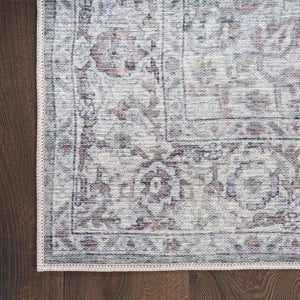 Bring Persian-inspired elegance to your home with this boho rug from the New Concept Washables Collection. The intricately printed floral medallion design in soft shades of grey and ivory adds charm, while intentional distressing lends a vintage touch. Lightweight and machine-washable, it’s crafted from a soft cotton and chenille blend.