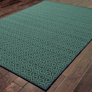 Oriental Weavers Meridian 1634Q Navy/Green Rectangle Indoor / Outdoor Area Rug - Trendy Stain Resistant Machine Made Patio Rug with Geometric Pattern