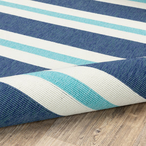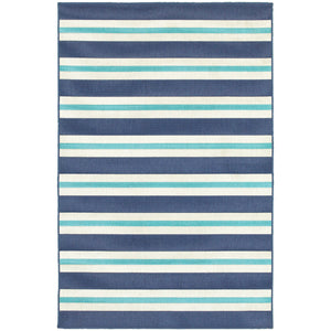 Oriental Weavers Meridian 5701B Blue/Ivory Rectangle Indoor / Outdoor Area Rug - Trendy Stain Resistant Machine Made Patio Rug with Striped Pattern