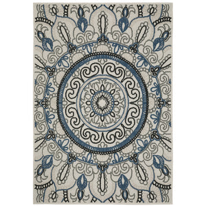 Oriental Weavers Torrey 072J1 Light Grey/Blue Rectangle Indoor / Outdoor Area Rug - Stain Resistant Machine Made Patio Rug with Medallion Pattern