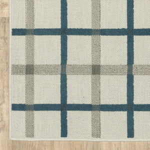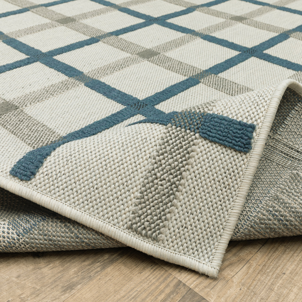 Oriental Weavers Torrey 7150H Light Grey/Blue Rectangle Indoor / Outdoor Area Rug - Stain Resistant Machine Made Patio Rug with Geometric Pattern